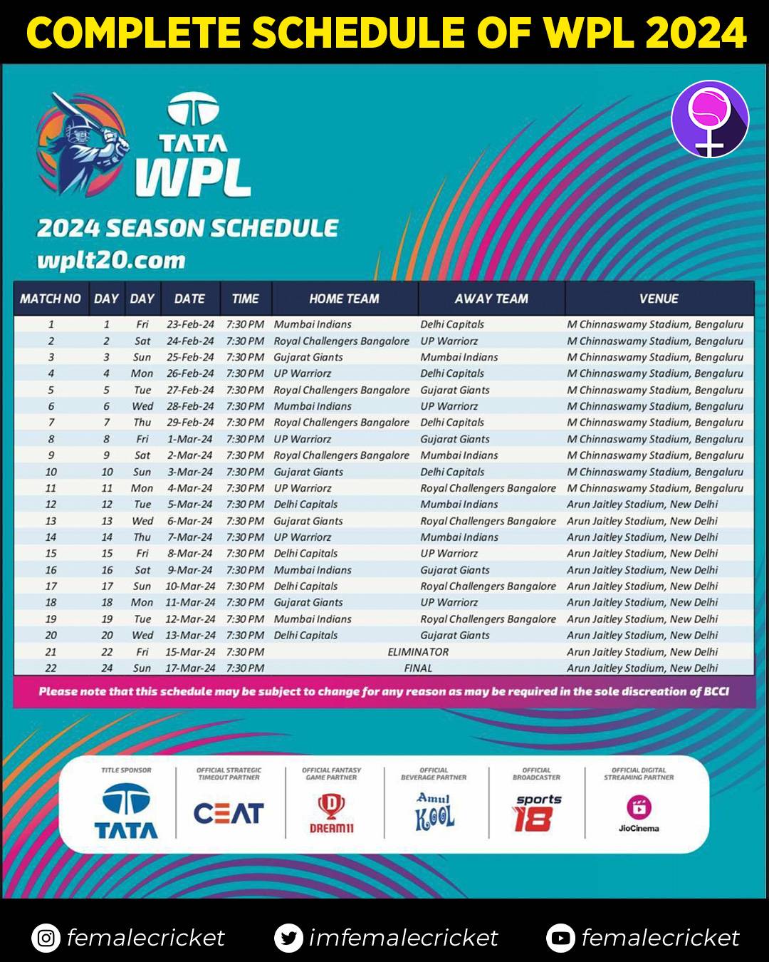 নারী আইপিএলের দ্বিতীয় আসরের চূড়ান্ত সূচি প্রকাশ করেছে ভারতীয় ক্রিকেট বোর্ড (বিসিসিআই)। আগামী ২৩ ফেব্রুয়ারি থেকে শুরু হবে এই আসর।